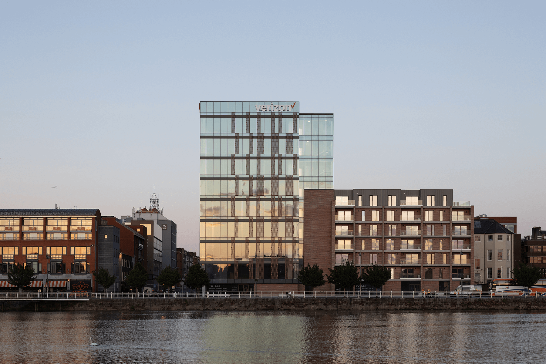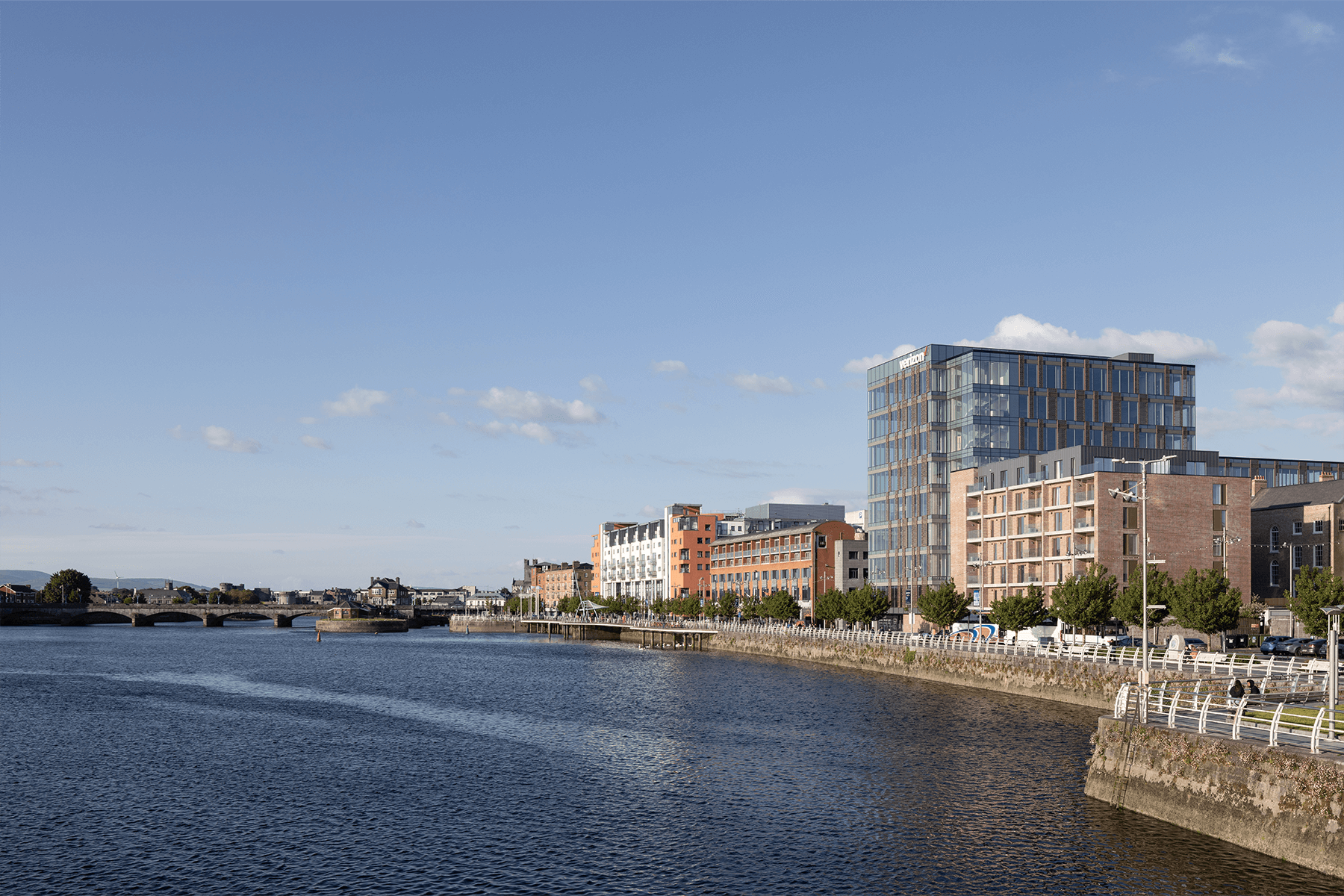 Located on the banks of the River Shannon on an urban corner and infill site in Limericks city centre, 1BQ rises 9 stories tall offering panoramic views of the city and down the River Shannon.